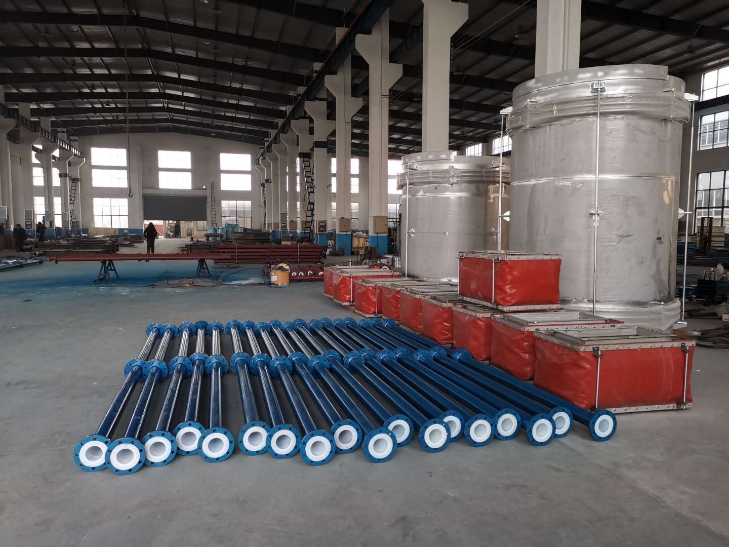 我公司專業生產鋼襯四氟補償器,鋼襯四氟軟管,模壓管件,純四氟補償器;金屬(非金屬)膨脹節、金屬軟管、脫硫擋板門,彈簧支吊架,管托,網套四氟復合補償器,橡膠四氟軟接頭,鋼襯四氟管道, 網套四氟軟管,板襯管件,防腐風門設備。技術力量雄厚、設備精良、具有理化分析、電火花檢測儀、超聲波探傷、磁粉探傷、X 射線探傷。